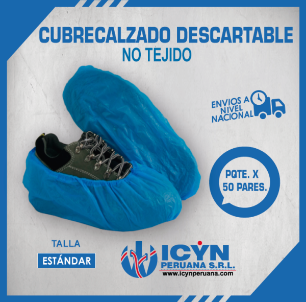 Cubre calzado descartable non woven con elástico en los bordes para un mejor ajuste. Su diseño impide la transferencia de agentes físicos, e incluso biológicos (barrera bacteriana). El material con el que está elaborado es de alta calidad y excelente gramaje lo que lo hace más resistente a la ruptura y/o desgarro que otros productos similares en el mercado, tiene una buena elasticidad, es hidrofóbico, no se deshilacha, tiene una superficie suave y es hipo alergénico, además el material permite una perfecta ventilación.