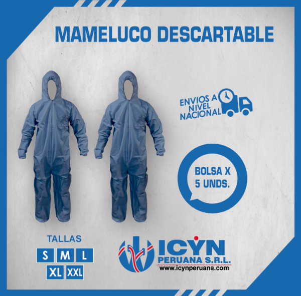 Mameluco descartable con Capucha elaborada con tela no tejida a base de Polipropileno 100%, con cierre frontal en el medio, con puño y elástico en las mangas para una mejor protección. Es una excelente barrera microbiana, es capaz de bloquear los gérmenes patógenos de los fluidos por su propiedad hidrofóbica, también protege contra el polvo y la suciedad. Tiene una gran resistencia al desgarre y cuenta con una excelente elongación con lo que se garantiza la movilidad sin riesgos.